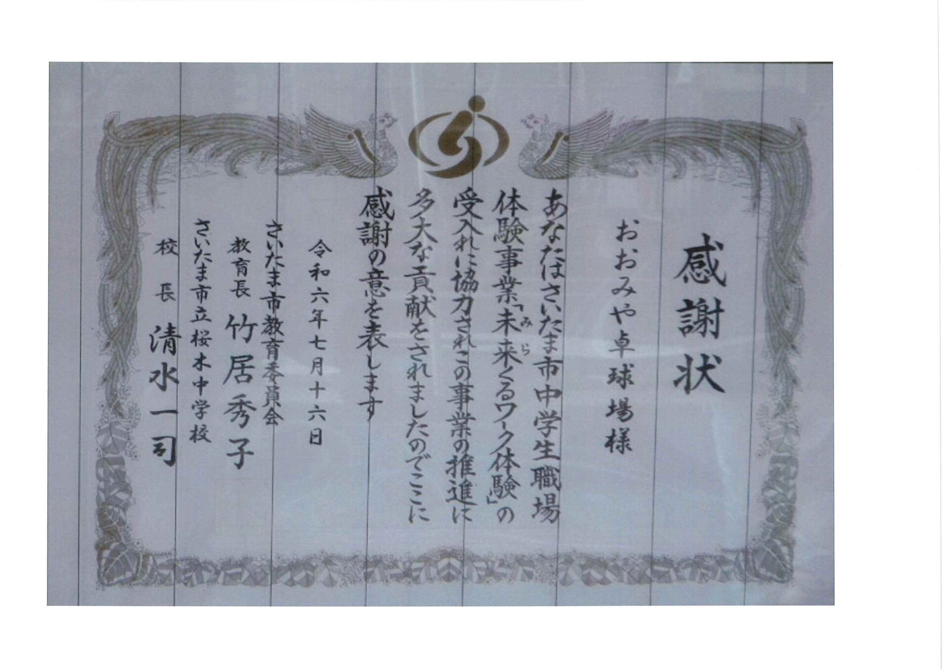 この度、さいたま市教育委員会より、さいたま市中学生職場体験事業「未来くるワーク体験」